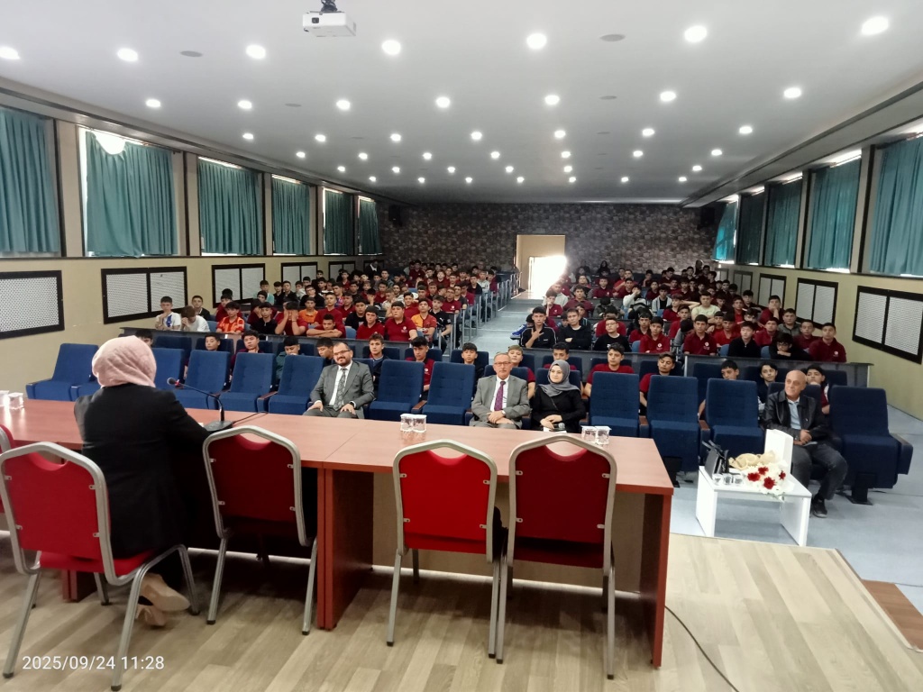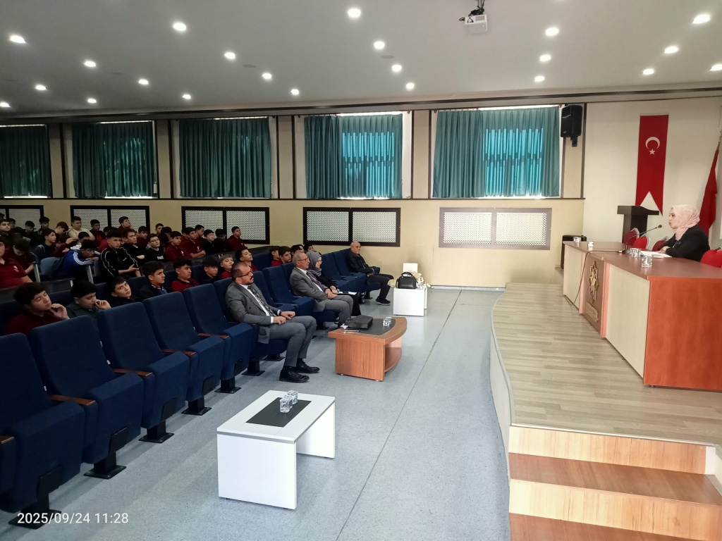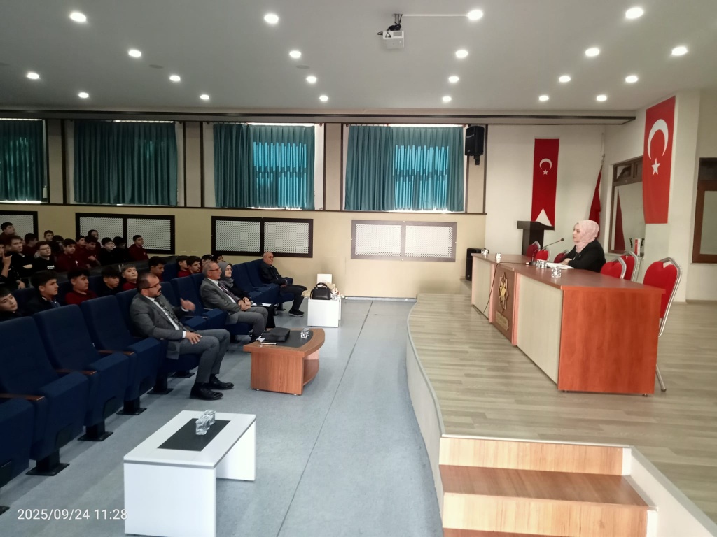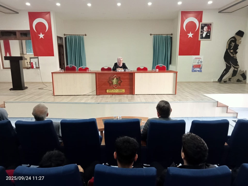 38. Ahilik Haftası Kutlama Programı kapsamında Aksaray Üniversitesi Kamu Yönetimi Bölüm Başkanı Aysun ÖCAL tarafından okulumuz öğrencilerine Ahilik konulu konferans düzenlendi.